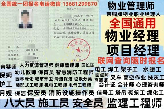 物业经理证上岗证1200|物业项目经理1400报名咨询梁老师|物业管理员950|物业管理师高级1500报名咨询梁老师